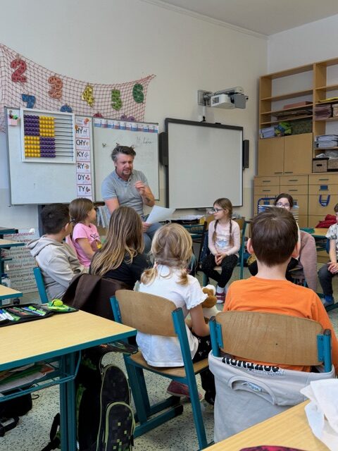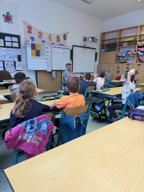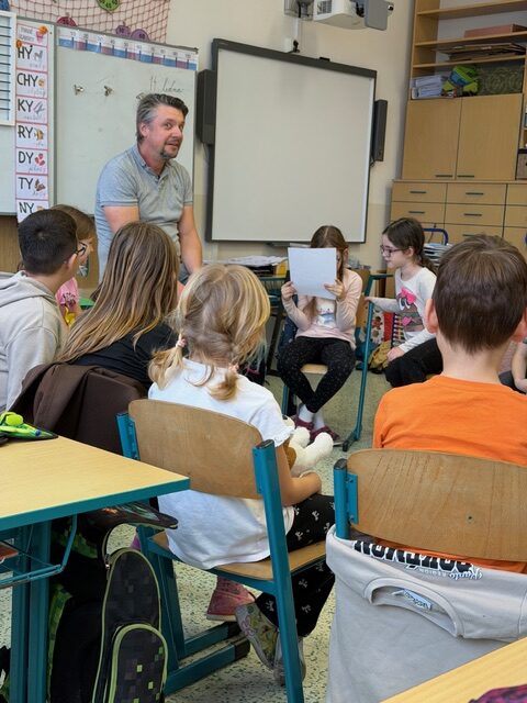 Ve středu 14. 1. 2026 naši třídu 2. B navštívil známý herec a tatínek našeho spolužáka pan Ondřej Kavan.