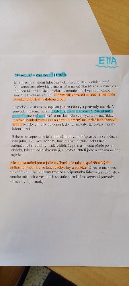 Po svačině, v rámci naší dílny čtení, jsme se o masopustu dozvěděli další zajímavé informace.