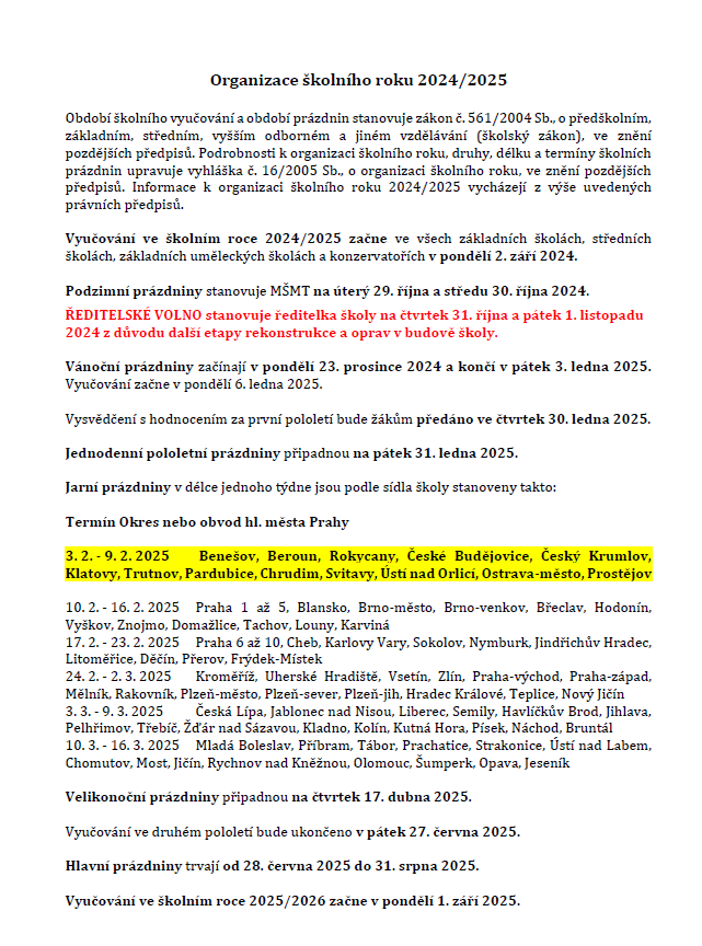 Organizace školního roku 2024/2025 Eva Drbalová 28. 8. 2023 Aktuality - škola Navigace pro příspěvek Previous Předchozí příspěvek Úřední hodiny o prázdnináchNext Další příspěvek Zahájení školního roku 2023/2024